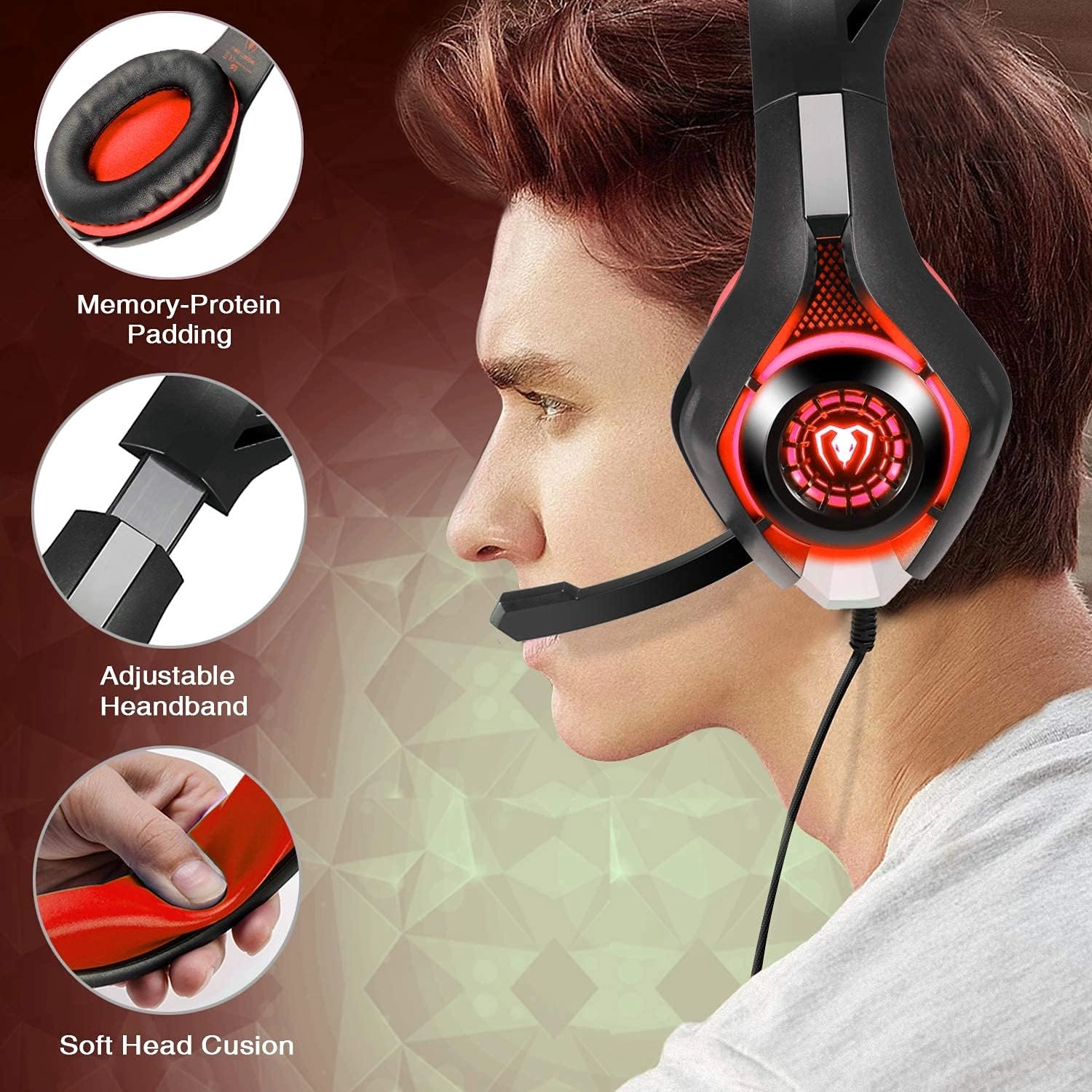 - De magnifiques lumières LED sont conçues sur les écouteurs (l’interface USB est uniquement utilisée pour alimenter les lumières LED sur les écouteurs), mettant en valeur l’atmosphère du jeu.